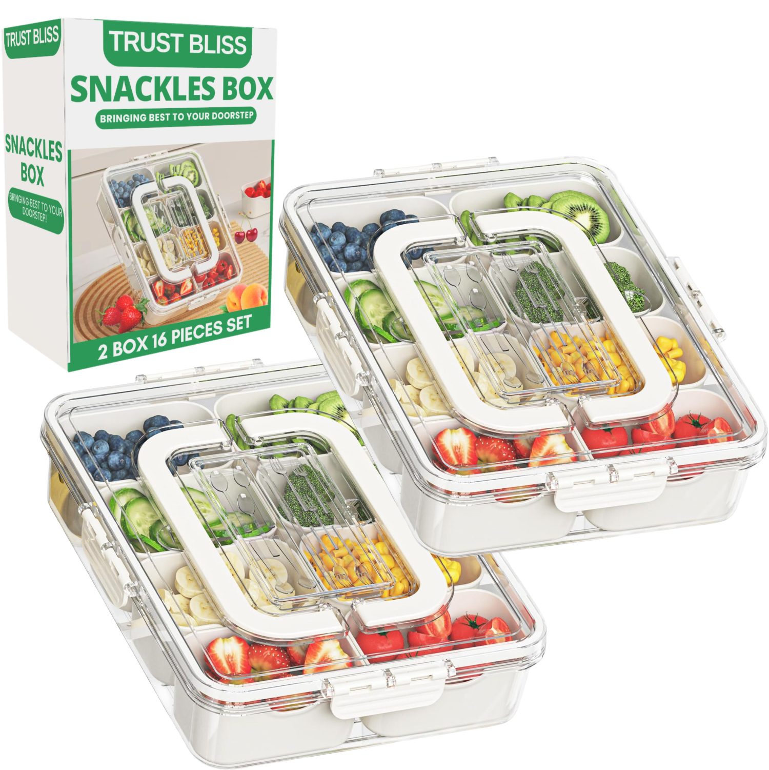 A snackle box is a divided food container that holds several snacks in one place. Each compartment keeps foods separate, which helps with organization, portion control, and travel use.